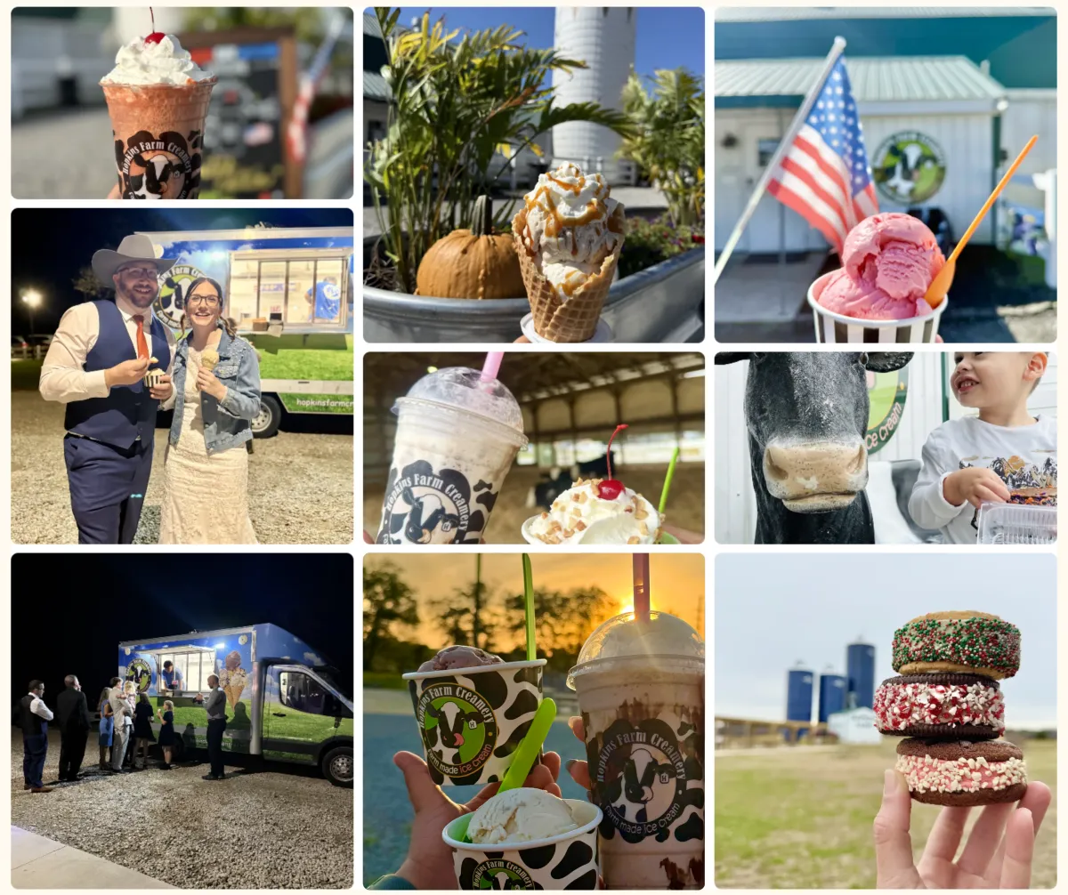 Welcome to Hopkins Farm Creamery — a family-run creamery on a working dairy farm. Every scoop is made with love, right here on the farm.